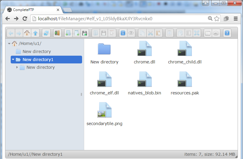 The Professional and Enterprise Editions of CompleteFTP support HTTP and HTTPS. Since version 7.2, they both support the FileManager web application - a Javascript/HTML client that can be used in any browser to manage the remote file system. This is an extremely powerful GUI web client that can perform all the normal operations expected of a file manager application, including uploading and downloading files. An example is shown at the bottom of this page.